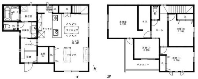 設備 | 設計住宅性能評価有/建設住宅性能評価書有(新築時)/耐震構造/耐震基準適合証明書有/建築確認完了検査済証有/閑静な住宅地/南側道路面す/前道6m以上/2階建/日当り良好/通風良好/LDK広さ20帖以上/電気/上水道公営/汚水下水道/都市ガス/室内物干し/フローリング/全居室フローリング/クッションフロア/2台駐車可能/全居室収納/収納スペース/クローゼット/ウォークインクローゼット/シューズボックス/シューズインクローゼット/システムキッチン/カウンターキッチン/IHクッキングヒーター/コンロ口数三口/食器洗乾燥機/独立洗面台/シャンプードレッサー/シャワー/トイレ2ヶ所/温水洗浄便座/バルコニー有/南面バルコニー/バルコニー・屋上に水栓あり/省エネルギー対策/フラット35・S適合証明書有/TVインターホン/小学校徒歩10分以内 | ||