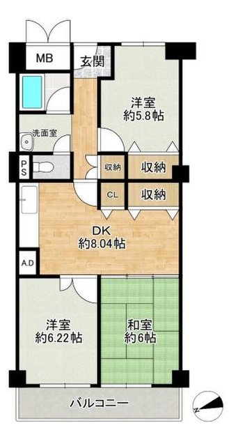 中古マンション堺市北区百舌鳥本町3丁 ヴィルメゾン上野芝2,990万円- 間取り