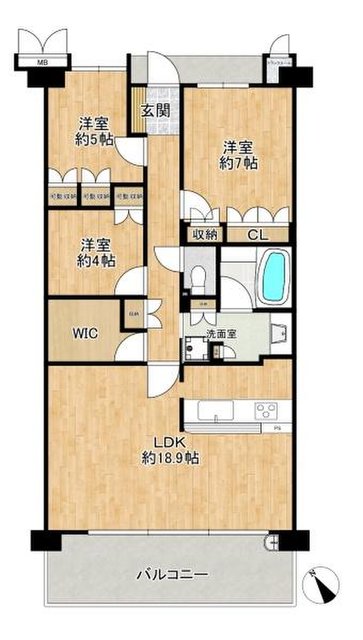 中古マンション高石市羽衣2丁目 ガーデンウェルズ浜寺公園シャインコート3,480万円- 間取り